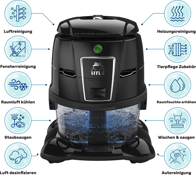Die Staubsauger von Hyla verwenden eine Revolutionäre Staubsauger-Technologie mit Wasserfilter (Zyklon)